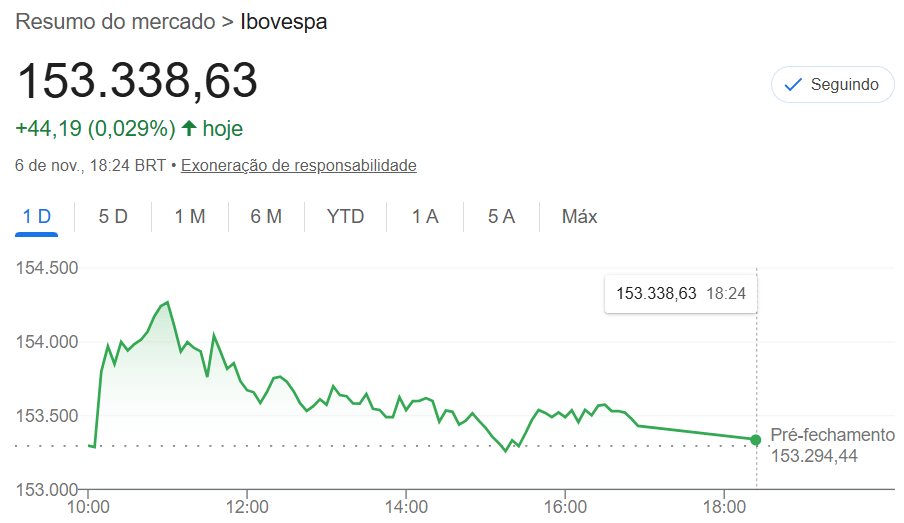 Mas aí, como em toda novela, veio o plot twist: as bolsas americanas começaram a cair, o otimismo global evaporou e o Ibovespa perdeu parte da força, terminando o dia praticamente estável, com uma alta de 0,03%, aos 153.339 pontos. Ainda assim, foi o suficiente pra renovar o recorde.