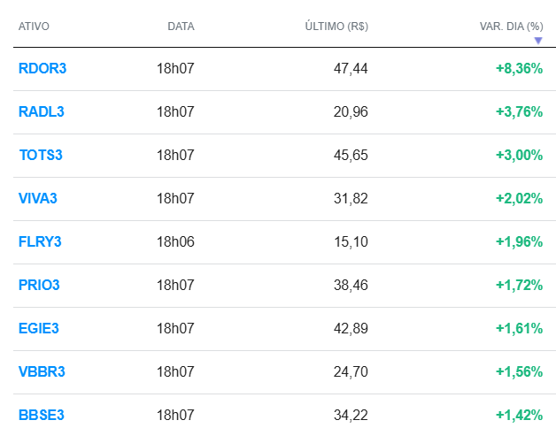 A boa: algumas empresas estão voando. A Rede D’Or, por exemplo, subiu 8,36% depois de divulgar um resultado forte, com margem EBITDA de 26,7%, acima das projeções. A ruim: a Minerva despencou 13,5%, num movimento de realização e resultado pontual mais fraco.