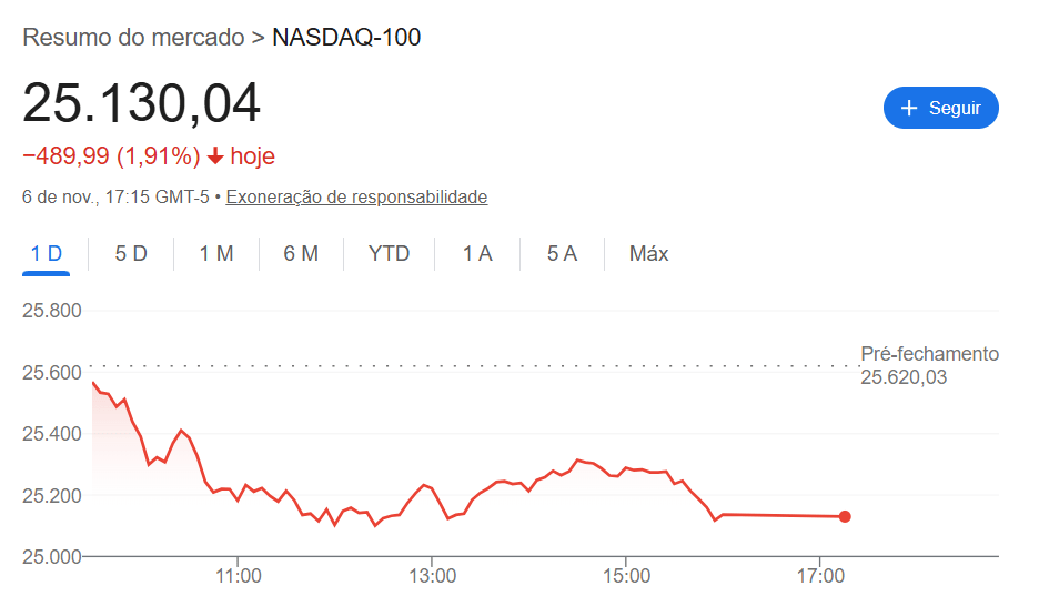 Durante a tarde, o clima azedou lá fora e, como sempre, o Brasil foi no embalo. A Nasdaq despencou, puxada pelas gigantes de tecnologia, e o investidor gringo fez o que sabe fazer melhor: pegou o dinheiro e correu pro dólar.