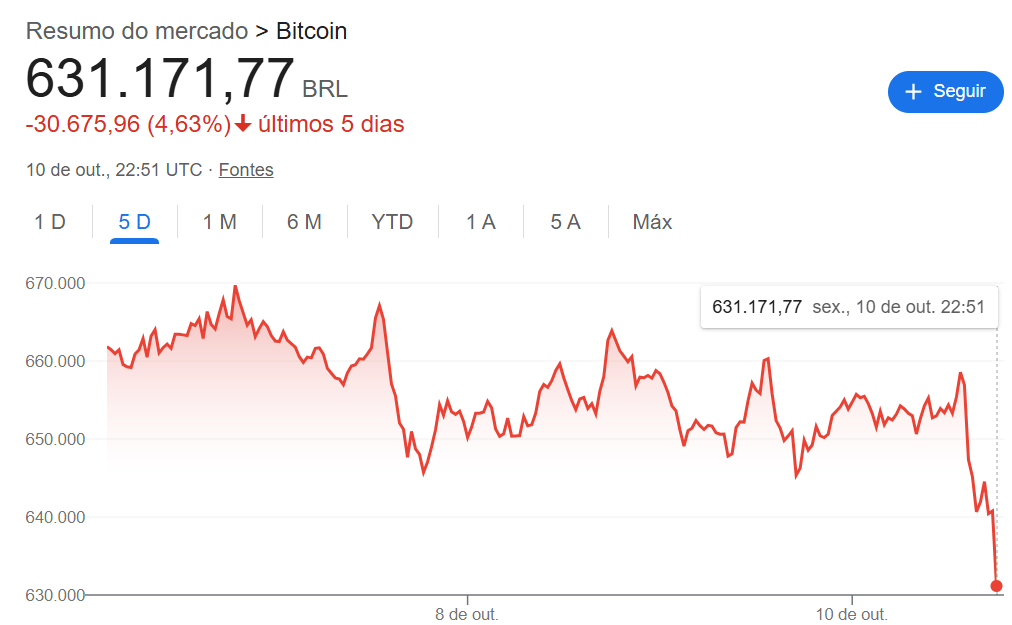 Enquanto o Ibovespa oscilava, o Bitcoin decidiu dar um descanso no topo. Depois de bater nova máxima histórica na semana, a turma das criptos resolveu realizar lucros.
